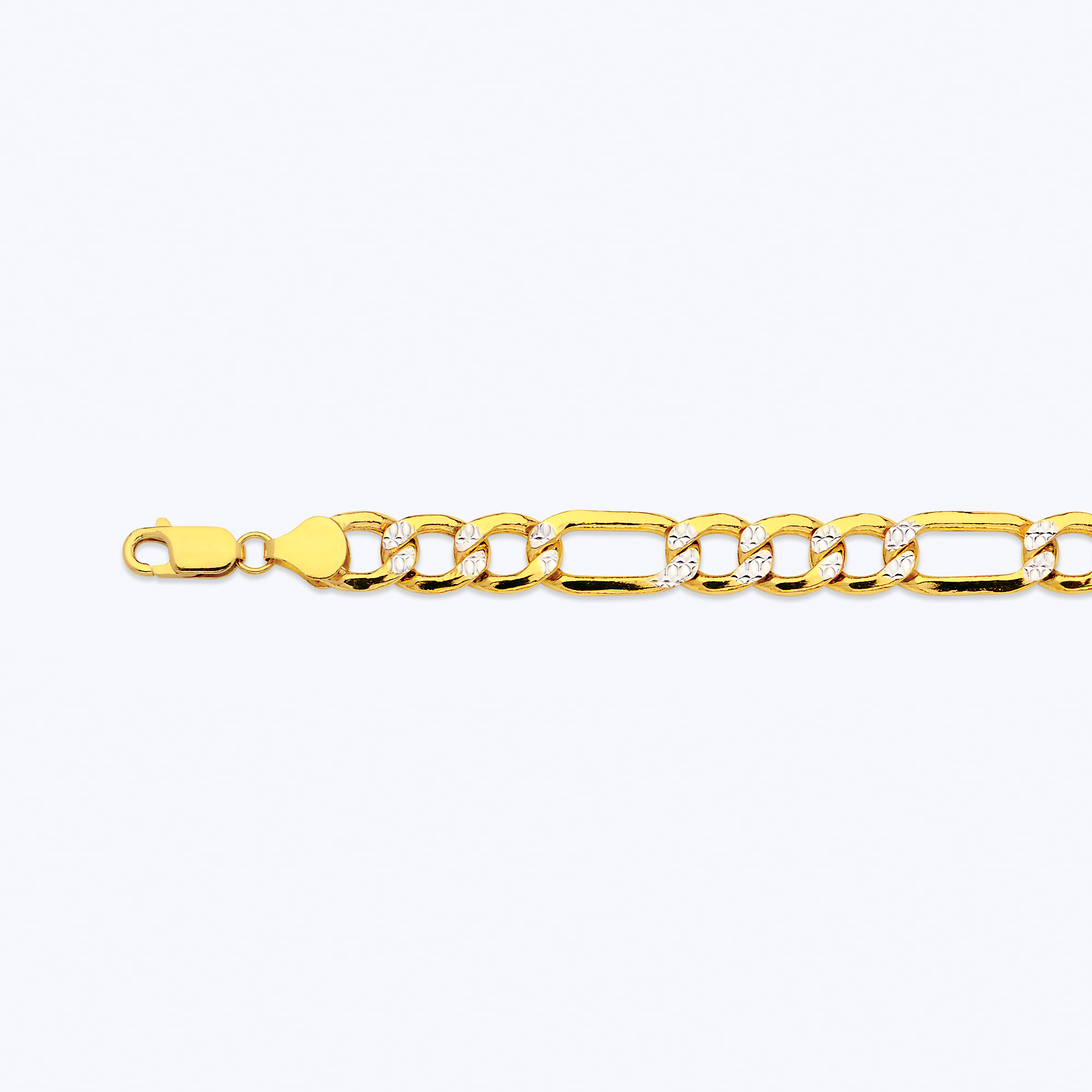 10K 10.5MM YELLOW GOLD HOLLOW PAVE FIGARO 7.5″ CHAIN BRACELET (AVAILABLE IN LENGTHS 7″ – 30″)
