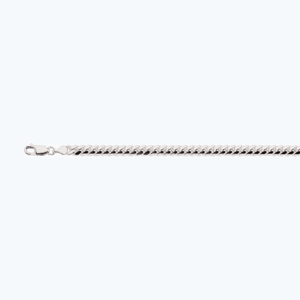 This 10 Karat White Gold Solid Miami Cuban Chain is a classic chain that is loved worldwide. Made with authentic 10k White gold, this chain has big bold links, which makes the chain very durable. Comes with various lengths that will match your preference, this chain weighs approximately 1.83 grams per inch and may not be exact.