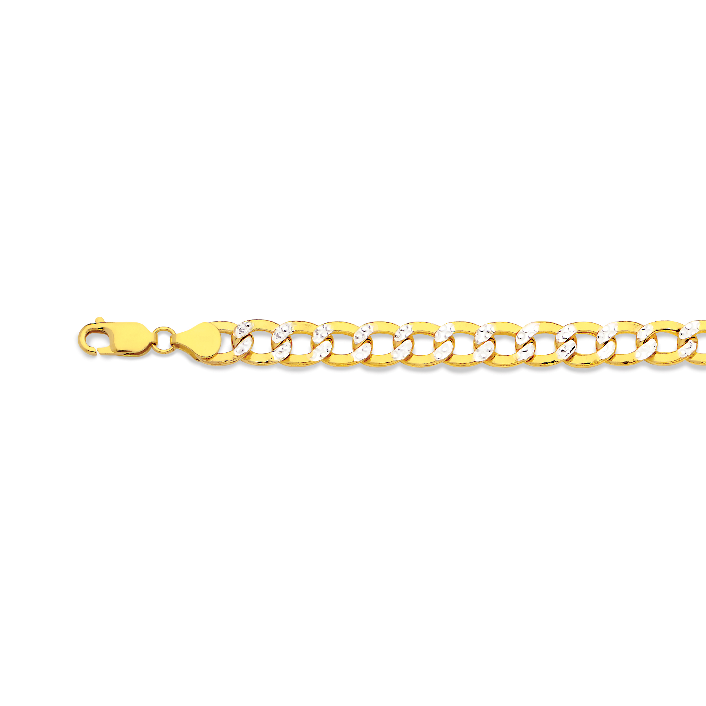 10K 7.5MM YELLOW GOLD HOLLOW PAVE CURB 7.5″ CHAIN BRACELET (AVAILABLE IN LENGTHS 7″ – 30″)