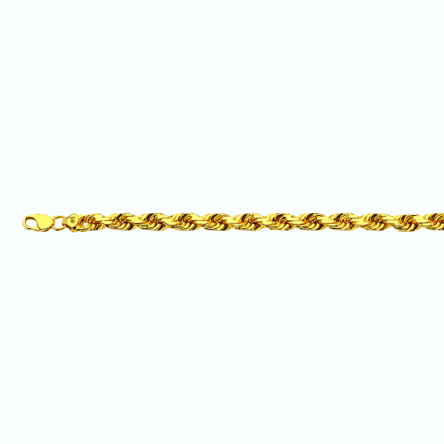 This 14 Karat Yellow Gold Diamond Cut Solid Rope Chain is a classic chain that is loved worldwide. Made with authentic 14k yellow gold, this chain has small links that have been twisted into a rope-like style, which make them very durable. This chain comes with various lengths that will match your preference. This chain weights approximately 8.69 grams per inches and may not be exact.