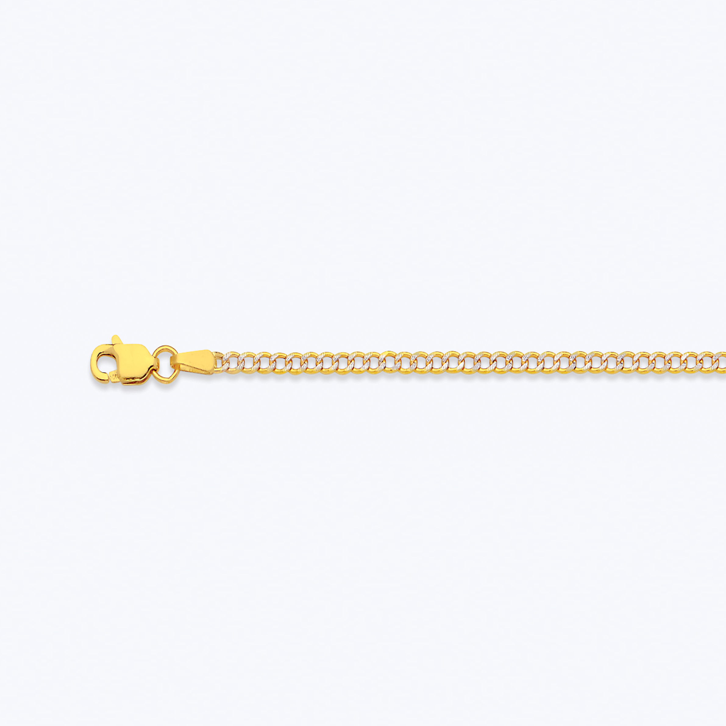 14K 2MM YELLOW GOLD HOLLOW PAVE CURB 7″ CHAIN BRACELET (AVAILABLE IN LENGTHS 7″ – 30″)