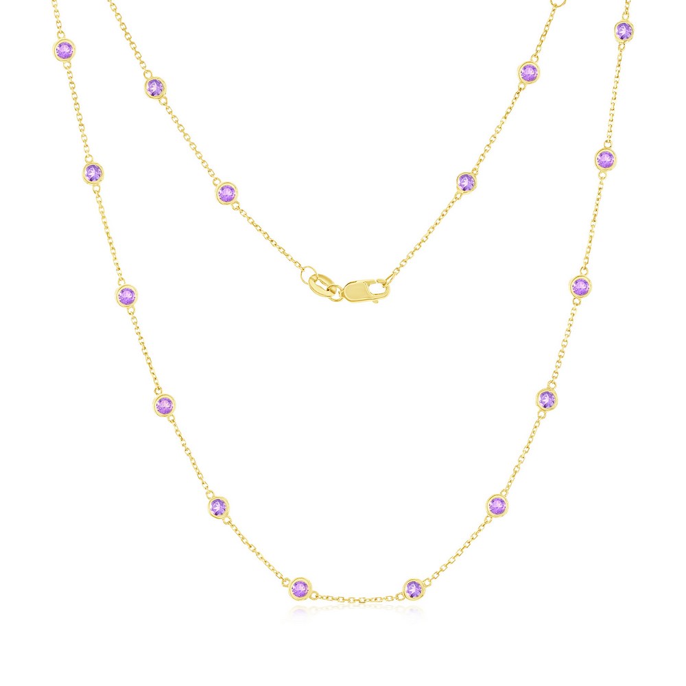 14K Yellow Gold, 2.18ct Gemstone Station Necklace – Amethyst