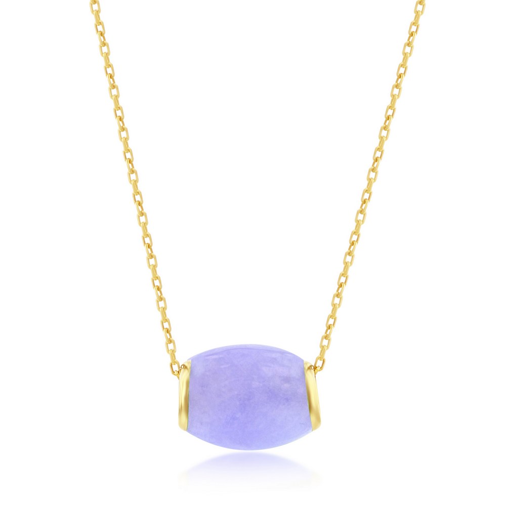 14K Yellow Gold, Oval Bead Slide Pendant – Lavendar Jade