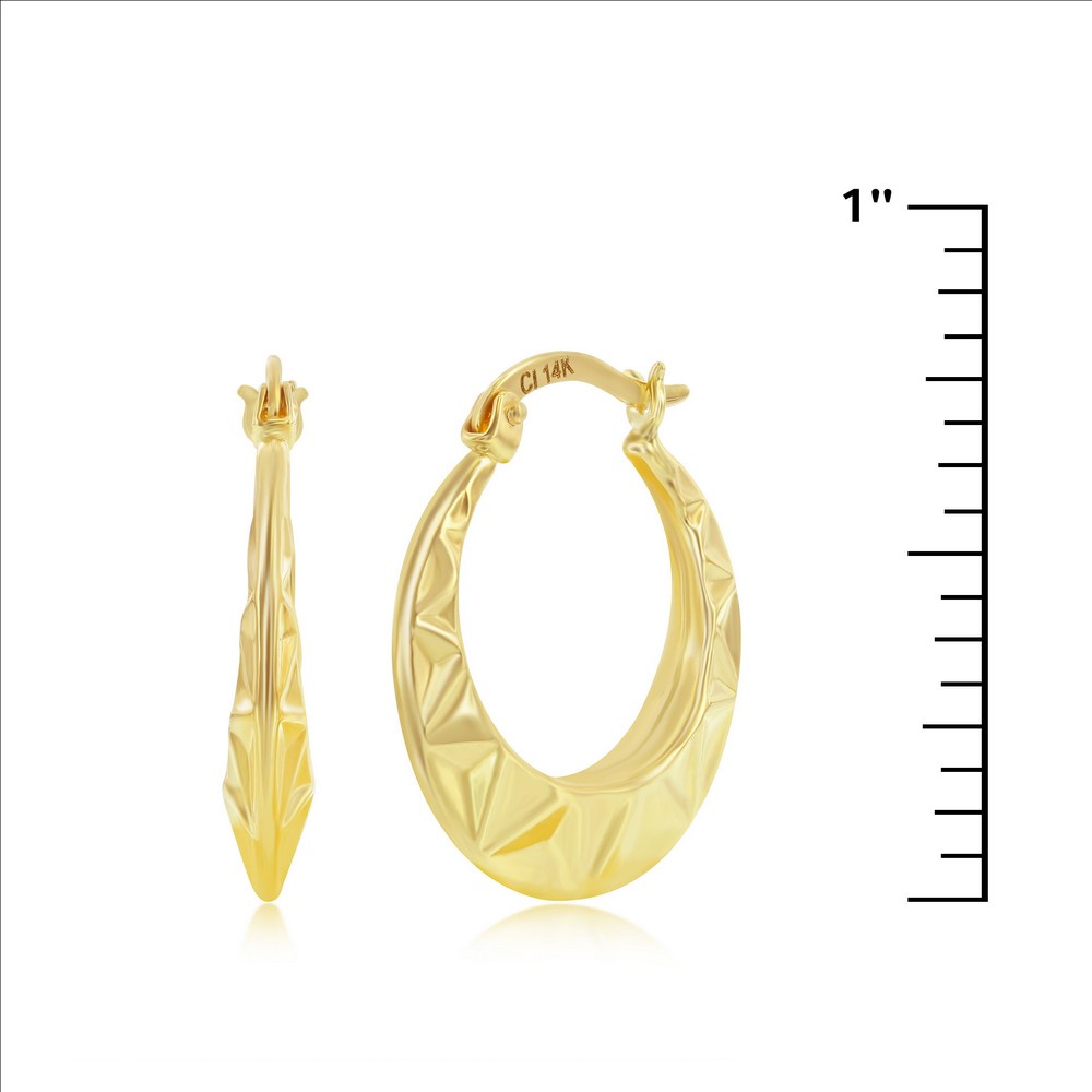 14K Yellow Gold, Textured 20mm Hoop Earrings