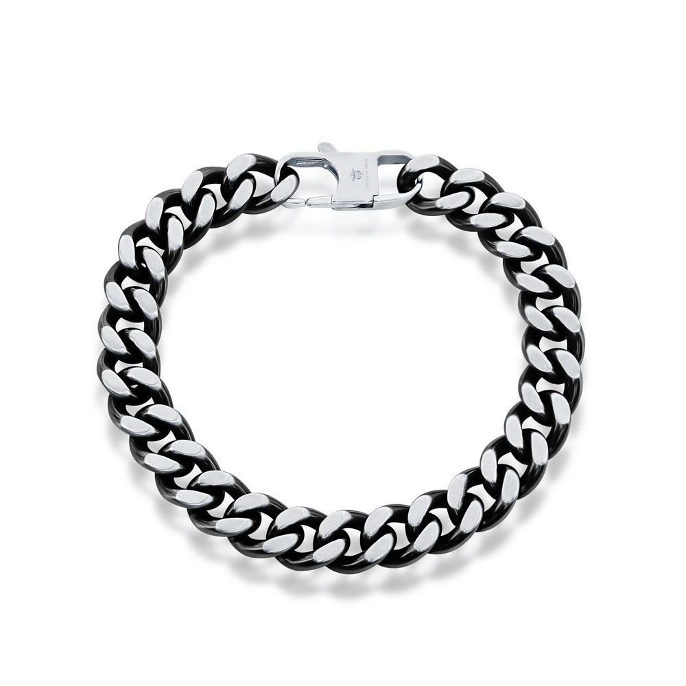 Stainless Steel 10.5mm Cuban Chain Bracelet – Brushed & Black IP Plated