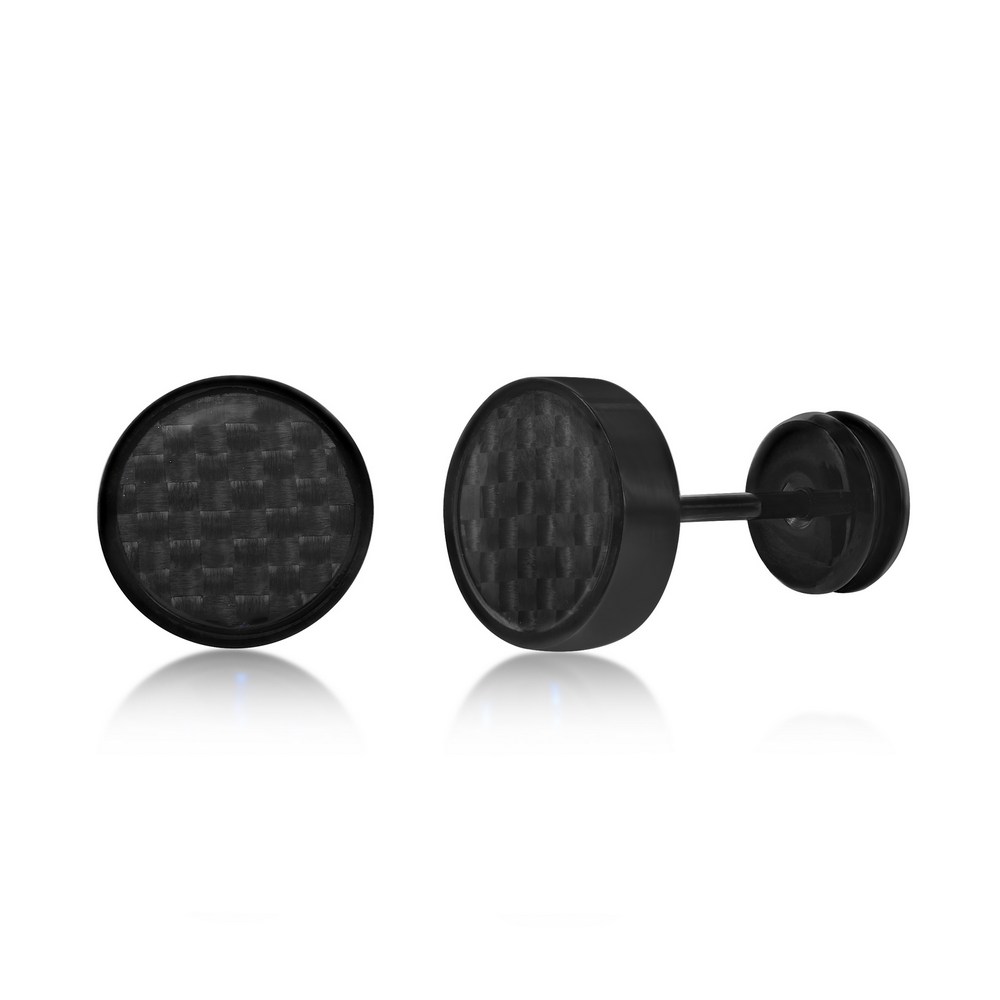 Stainless Steel 10mm Black Carbon Fiber Stud Earrings – Black Plated