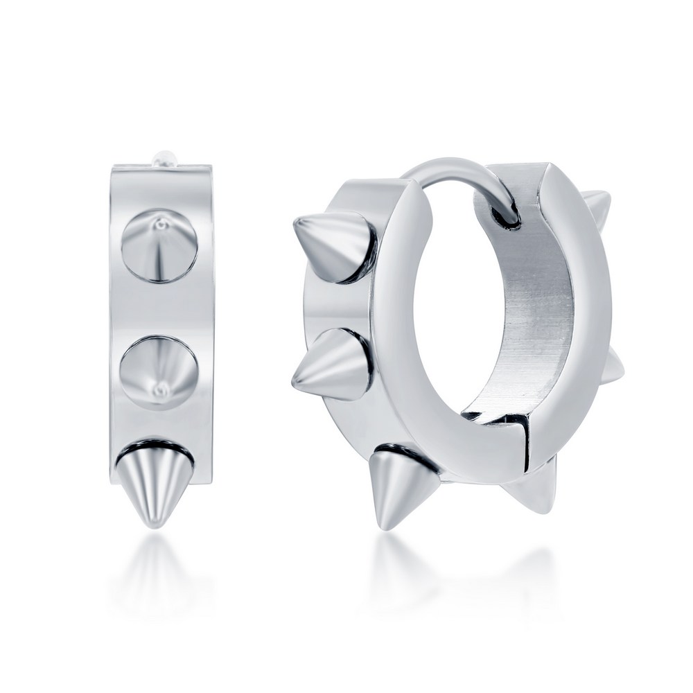 Stainless Steel 19mm Spike Huggie Hoop Earrings
