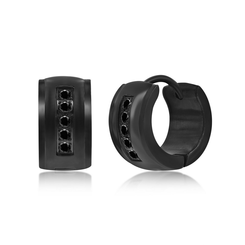 Stainless Steel 7x13mm CZ Huggie Hoop Earrings – Black Plated