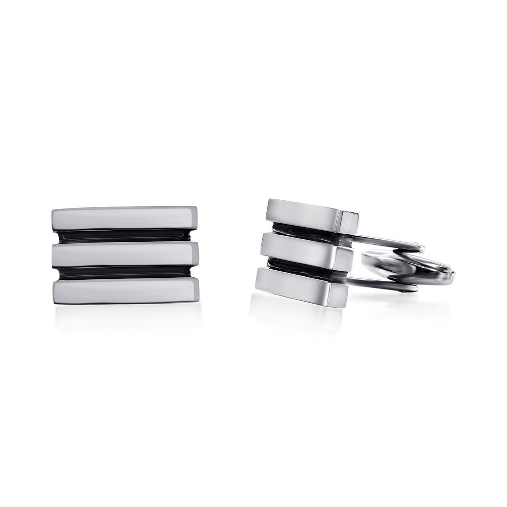 Stainless Steel, Black Lined Cuff Links