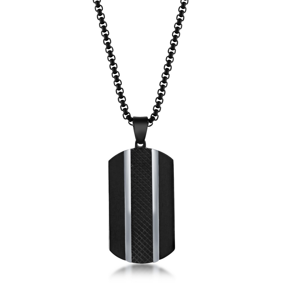 Stainless Steel Black Plated Silver Lined Dog Tag Necklace