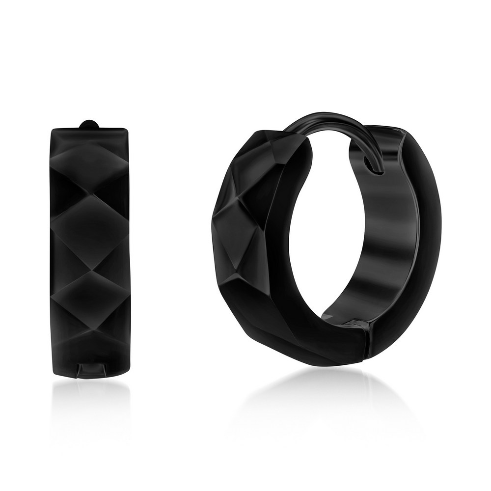 Stainless Steel Diamond Design Huggie Hoop Earrings – Black Plated