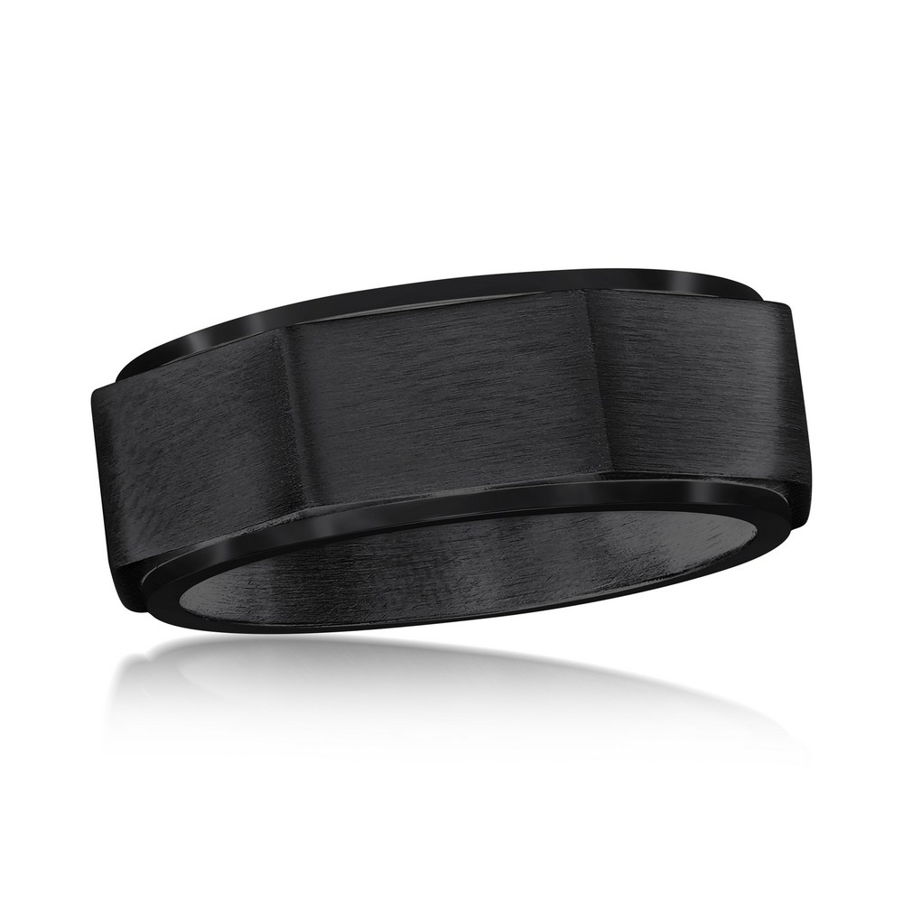 Stainless Steel Geometric Spinner Ring – Black Plated