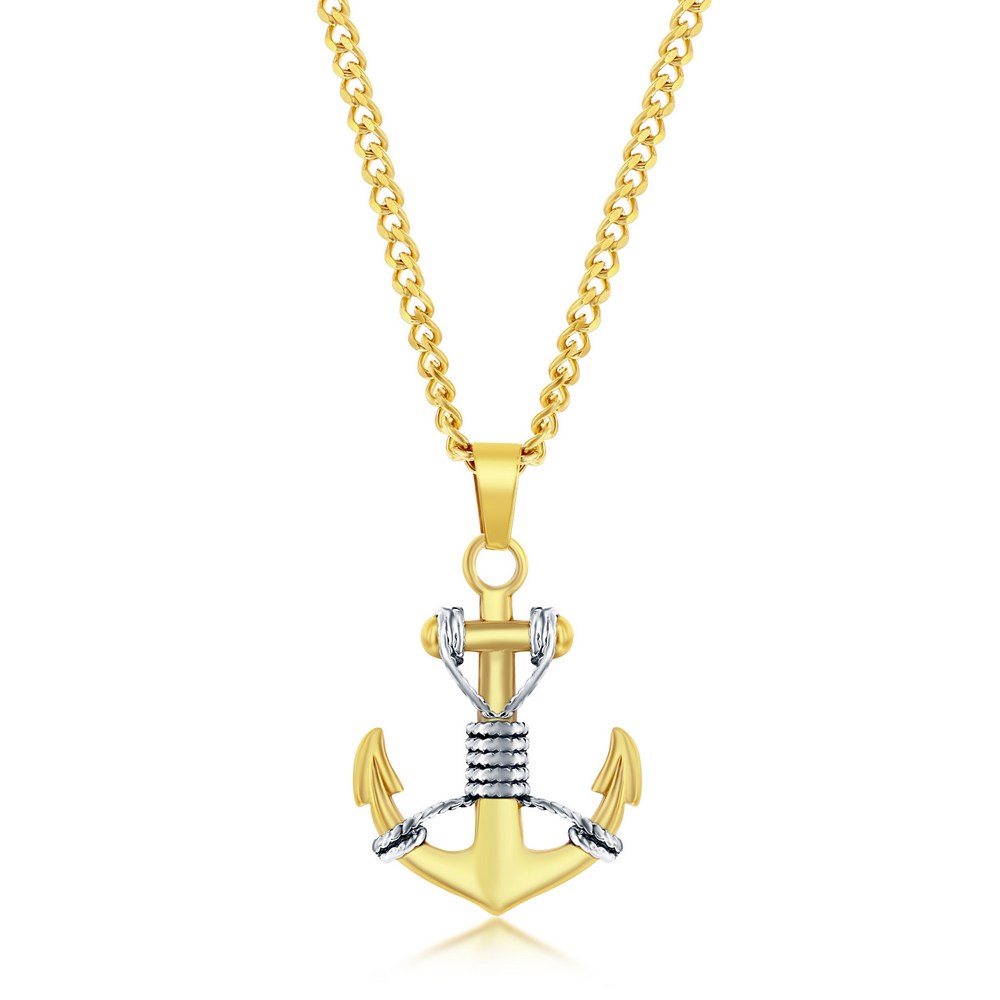 Stainless Steel Gold & Silver Anchor Necklace