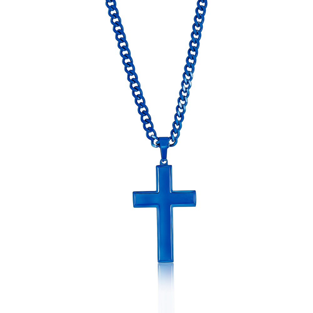 Stainless Steel Polished Cross Necklace – Blue Plated