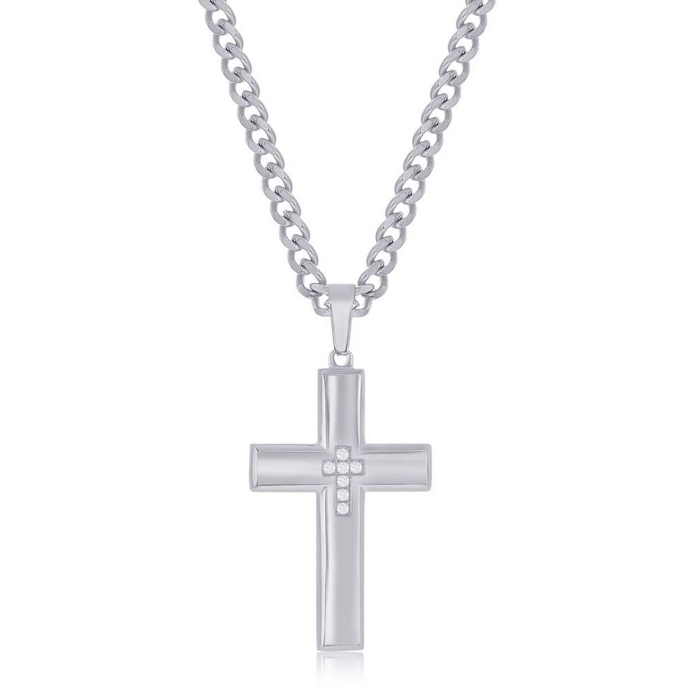 Stainless Steel Polished CZ Cross Necklace