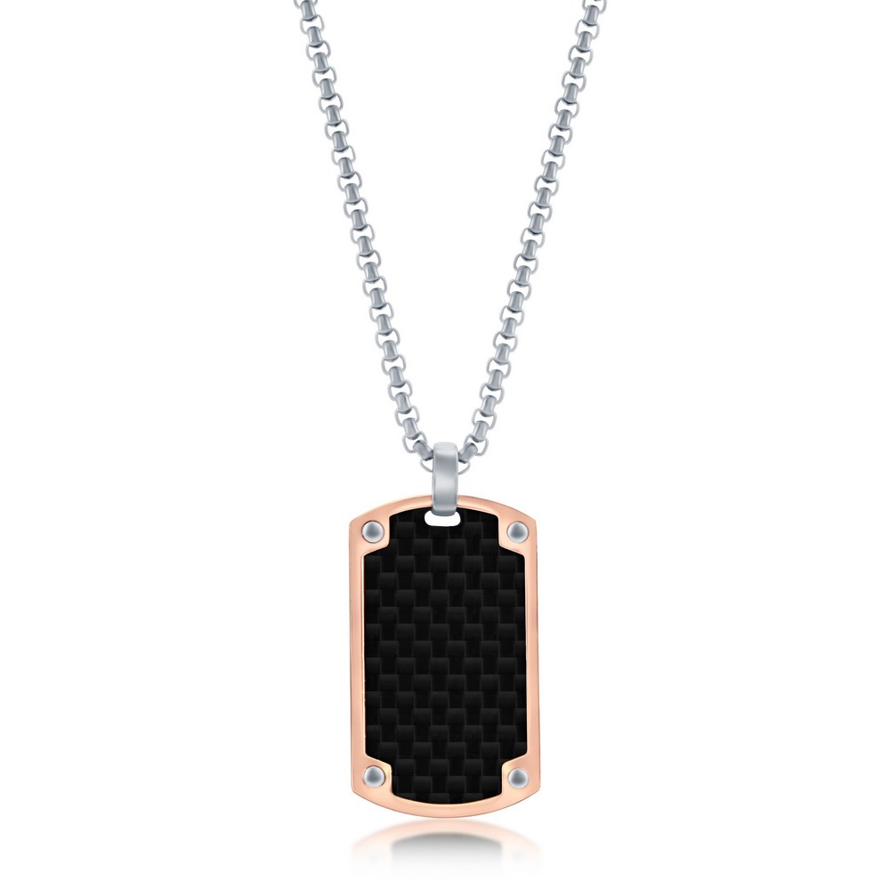 Stainless Steel Rose Gold Black Carbon Fiber Necklace