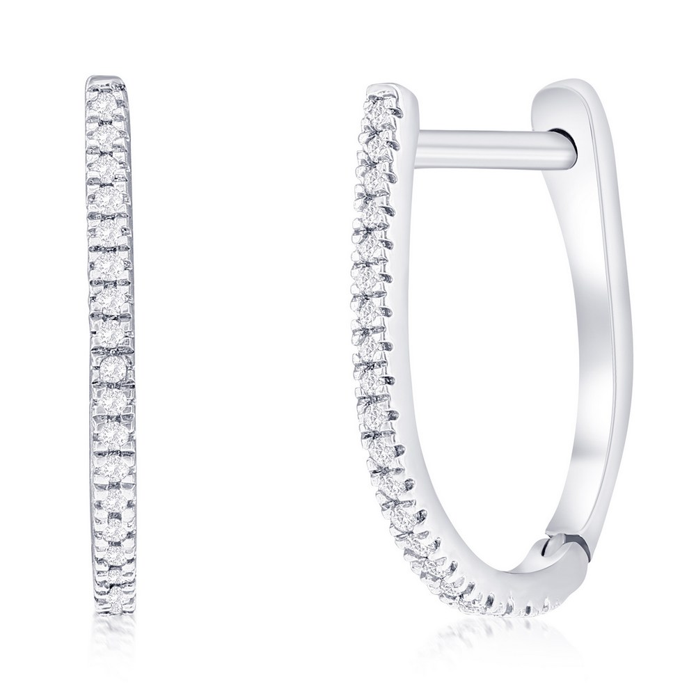 Sterling Silver, 14.5mm Oval Diamond Hoop Earrings – (40 Stones)