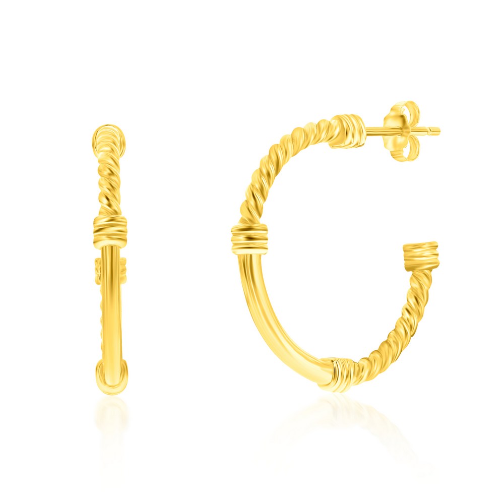 Sterling Silver 24mm Rope & Polished Half Hoop Earrings – Gold Plated