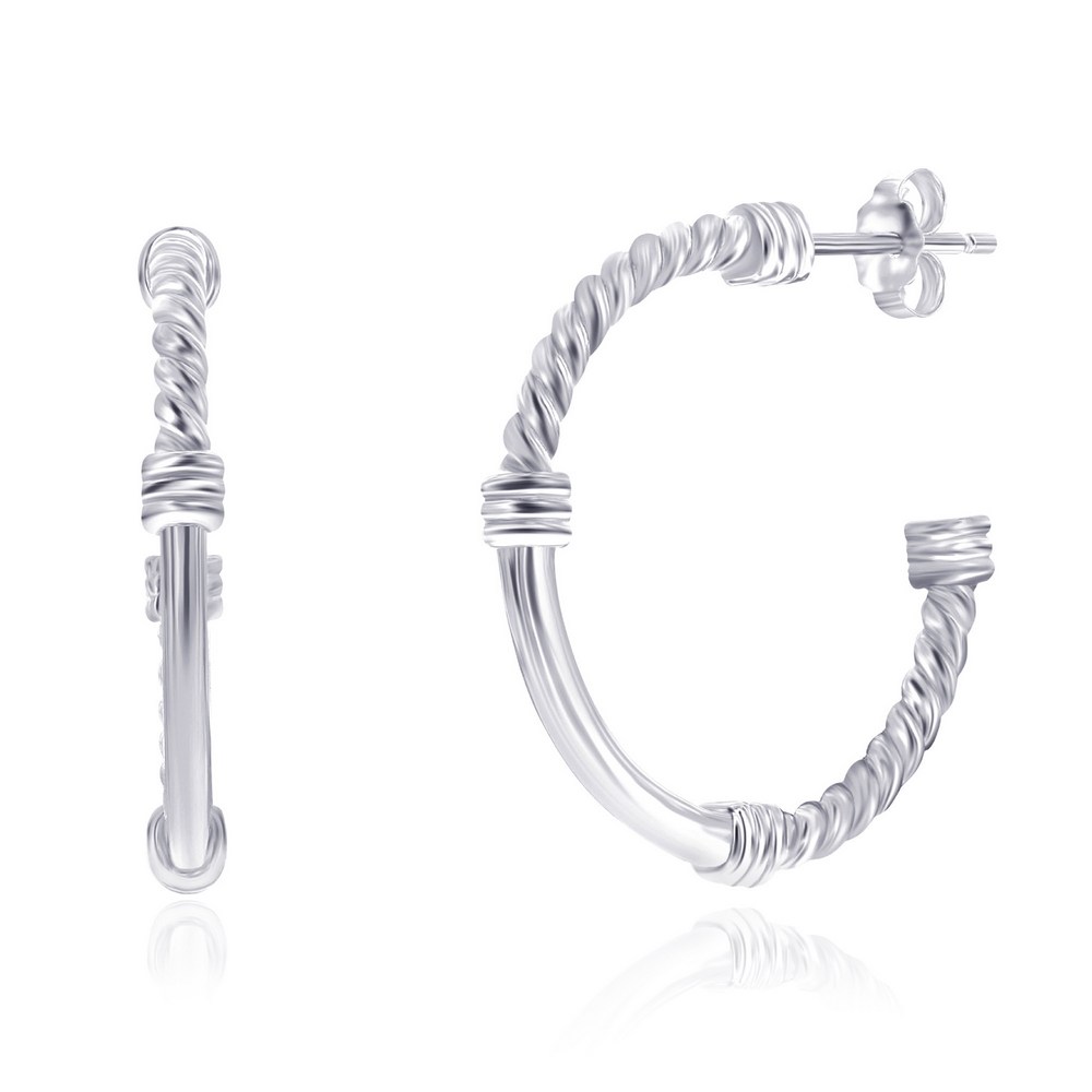 Sterling Silver, 28mm Rope & Polished Half Hoop Earrings