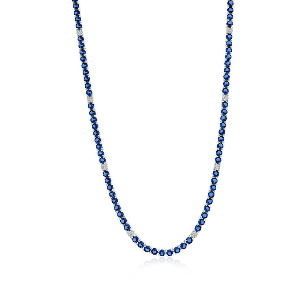 Sterling Silver 3.5mm Round CZ Tennis Necklace – Sapphire Spinel