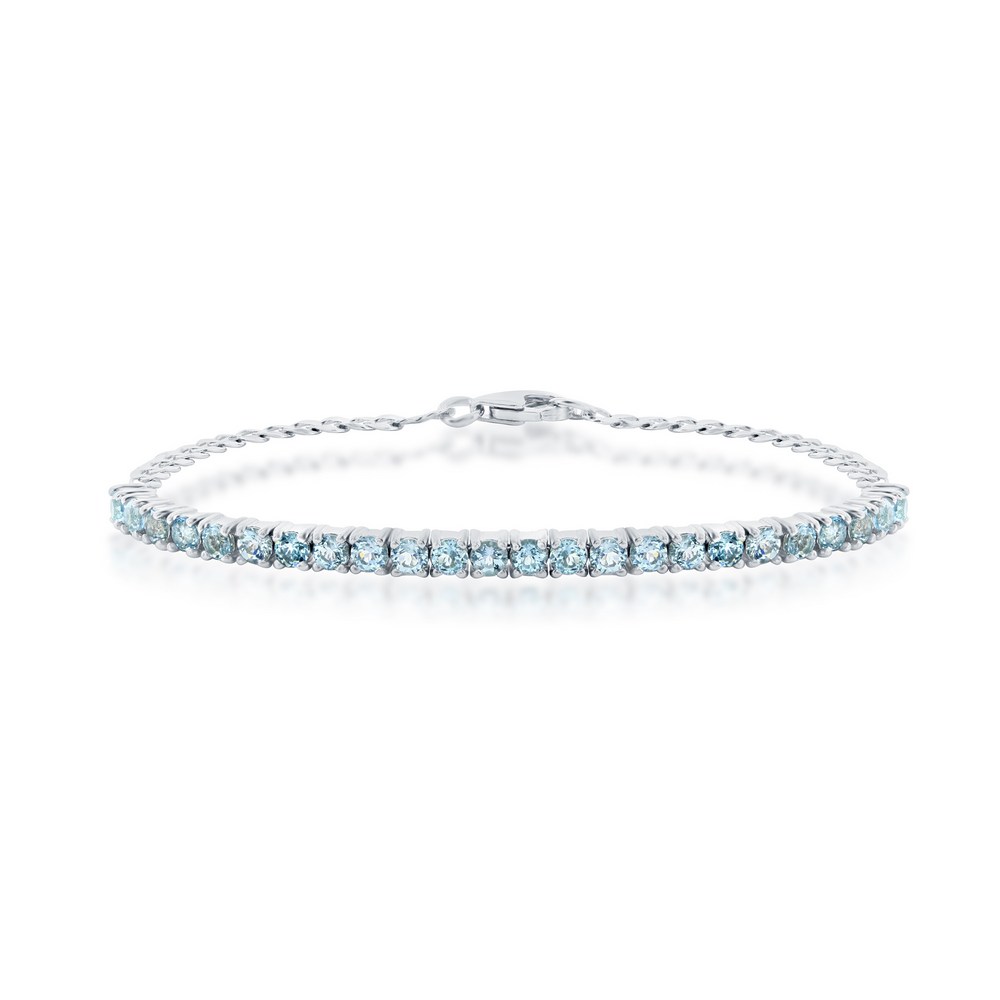 Sterling Silver 3.5mm Round Gem Tennis, Chain Bracelet – Blue Topaz