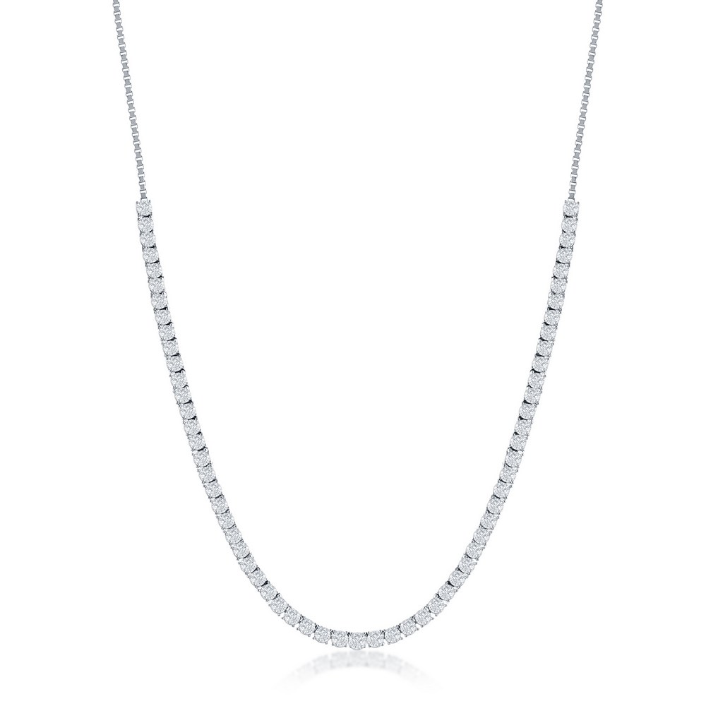 Sterling Silver 3mm CZ Tennis Adjustable Necklace