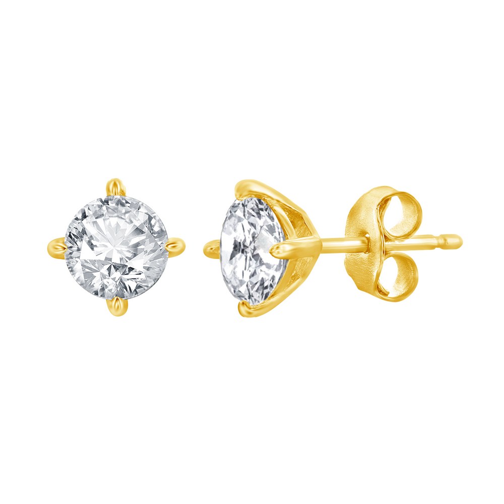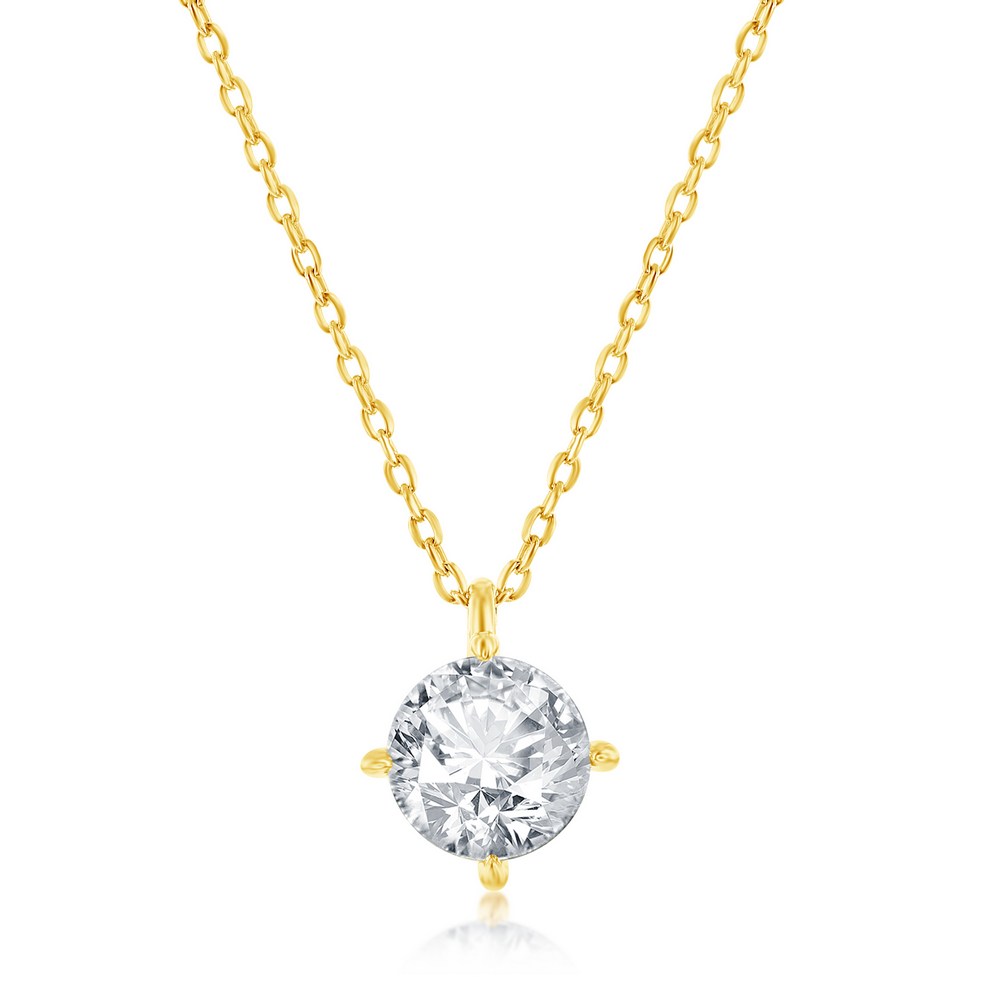 Sterling Silver, 5mm Round CZ, Solitaire Necklace & Earrings Set – Gold Plated
