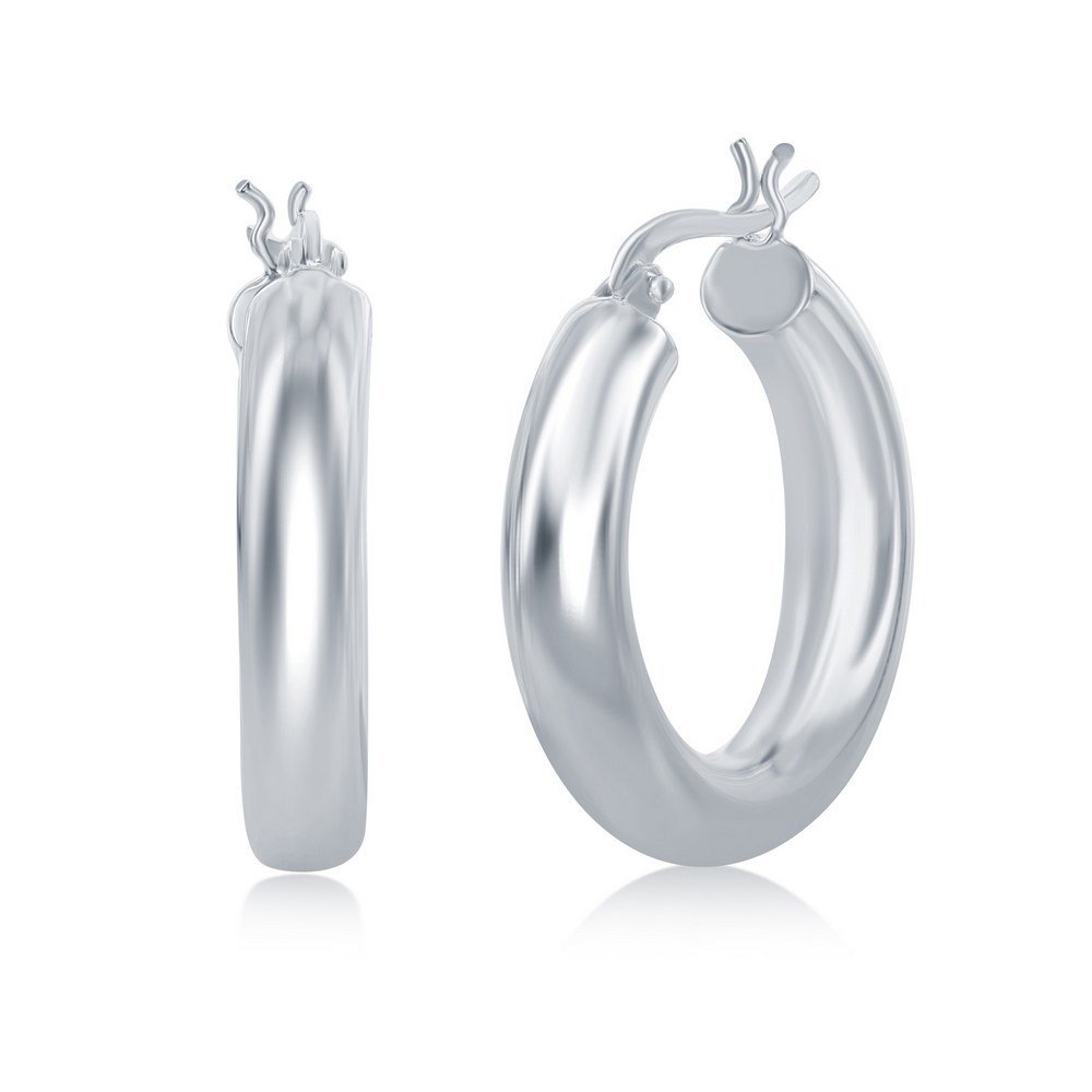 Sterling Silver 5x25mm High-Polished Hoop Earrings – Rhodium Plated