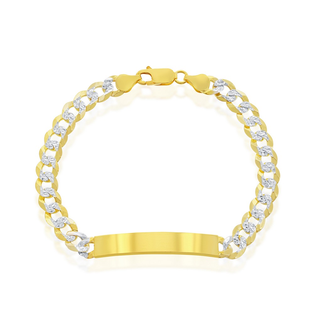 Sterling Silver, 7mm Pave Curb Chain ID Bracelet – Gold Plated