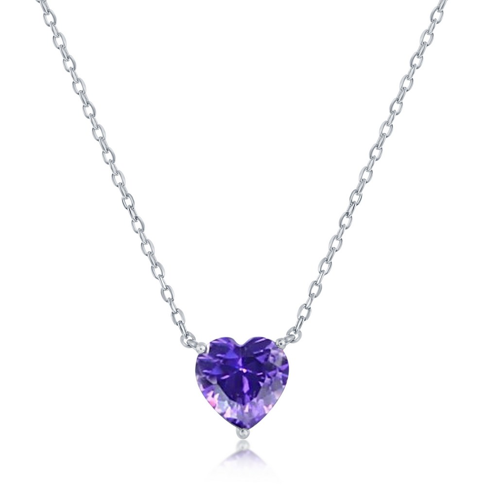 Sterling Silver 8MM Amethyst “Feburary” Heart Perciosa Crystal Necklace