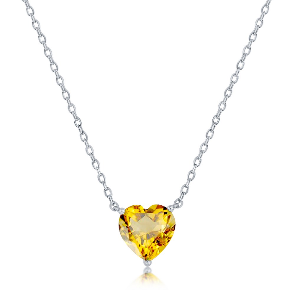Sterling Silver 8MM Citrine “November” Heart Perciosa Crystal Necklace