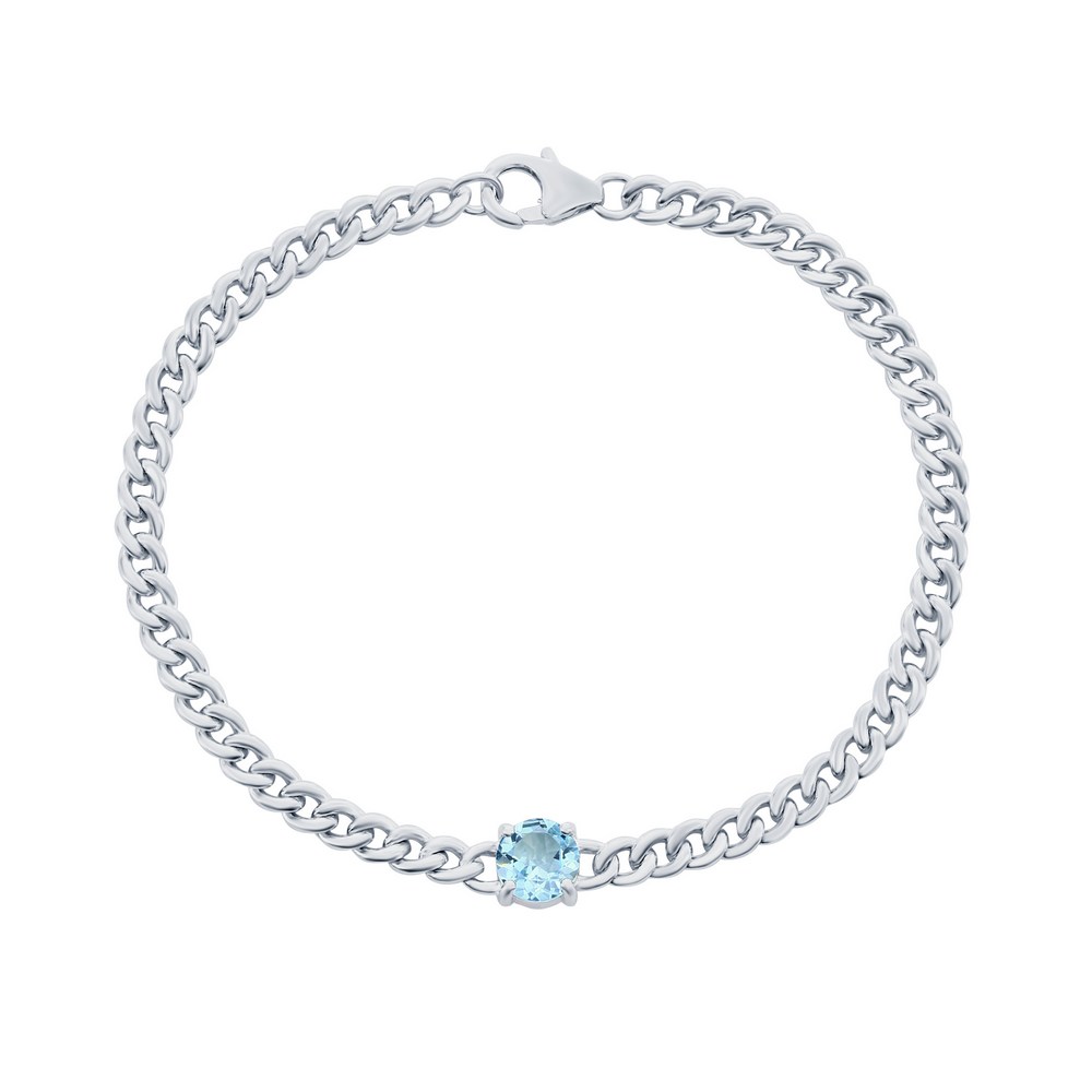Sterling Silver 8mm Round Center Gem, Chain Bracelet – Blue Topaz