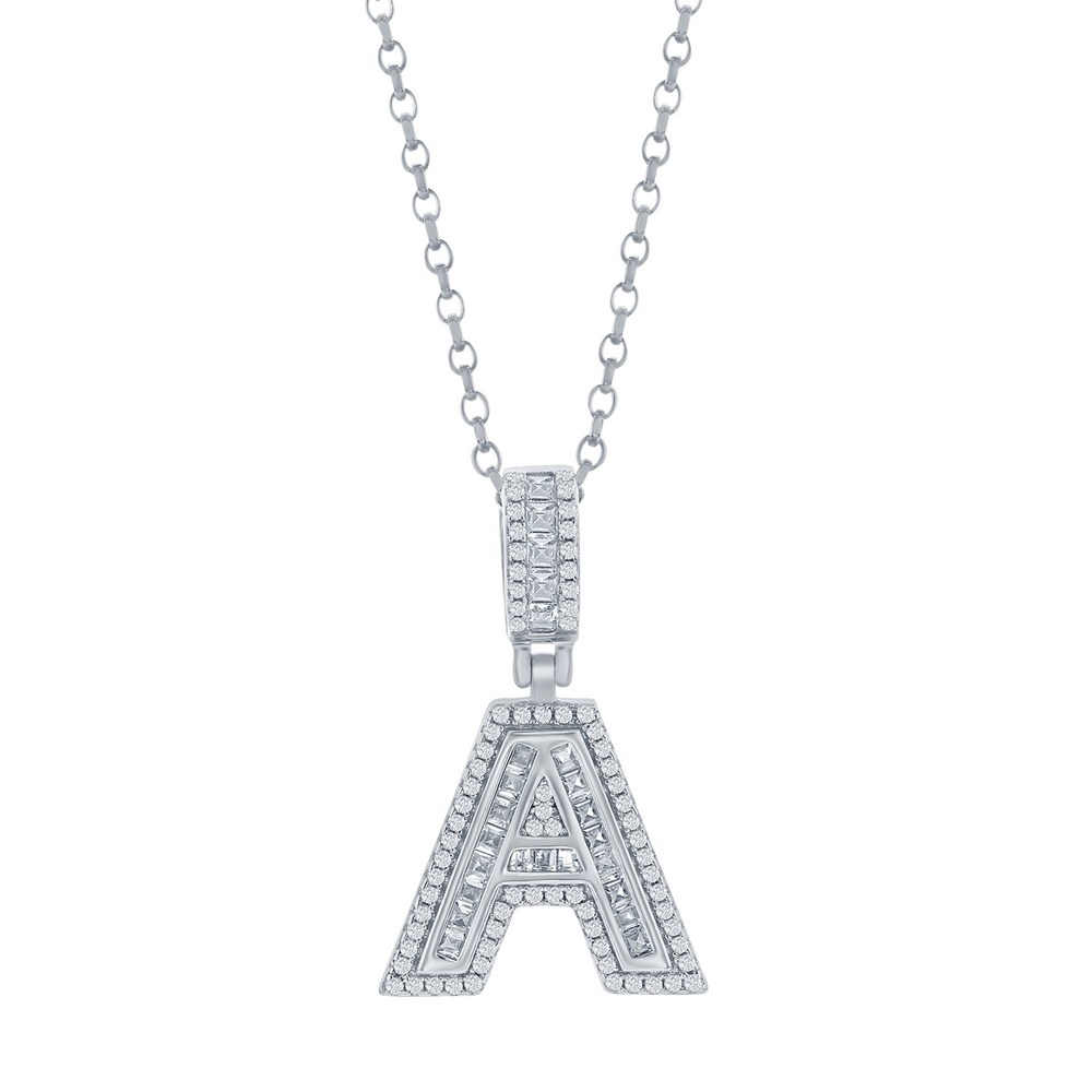 Sterling Silver ‘A’ Baguette CZ Initial Pendant w/Chain