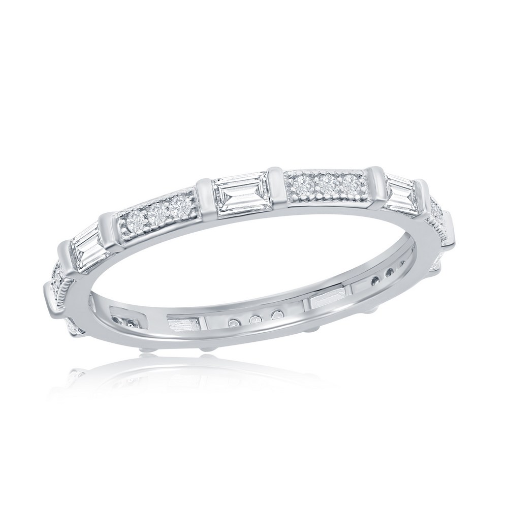 Sterling Silver, Alternating Micro Pave and Baguette CZ Eternity Ring