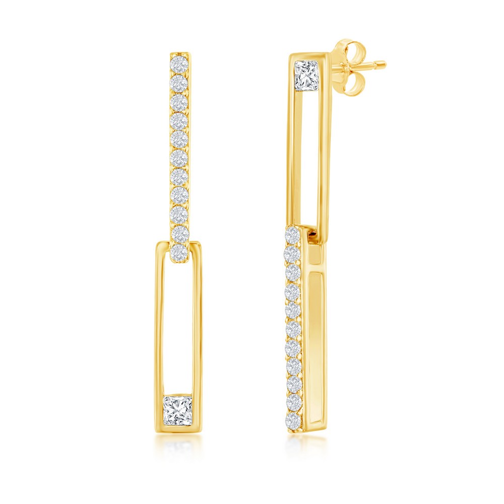 Sterling Silver Asymmetric Paperclip CZ Earrings – Gold plated