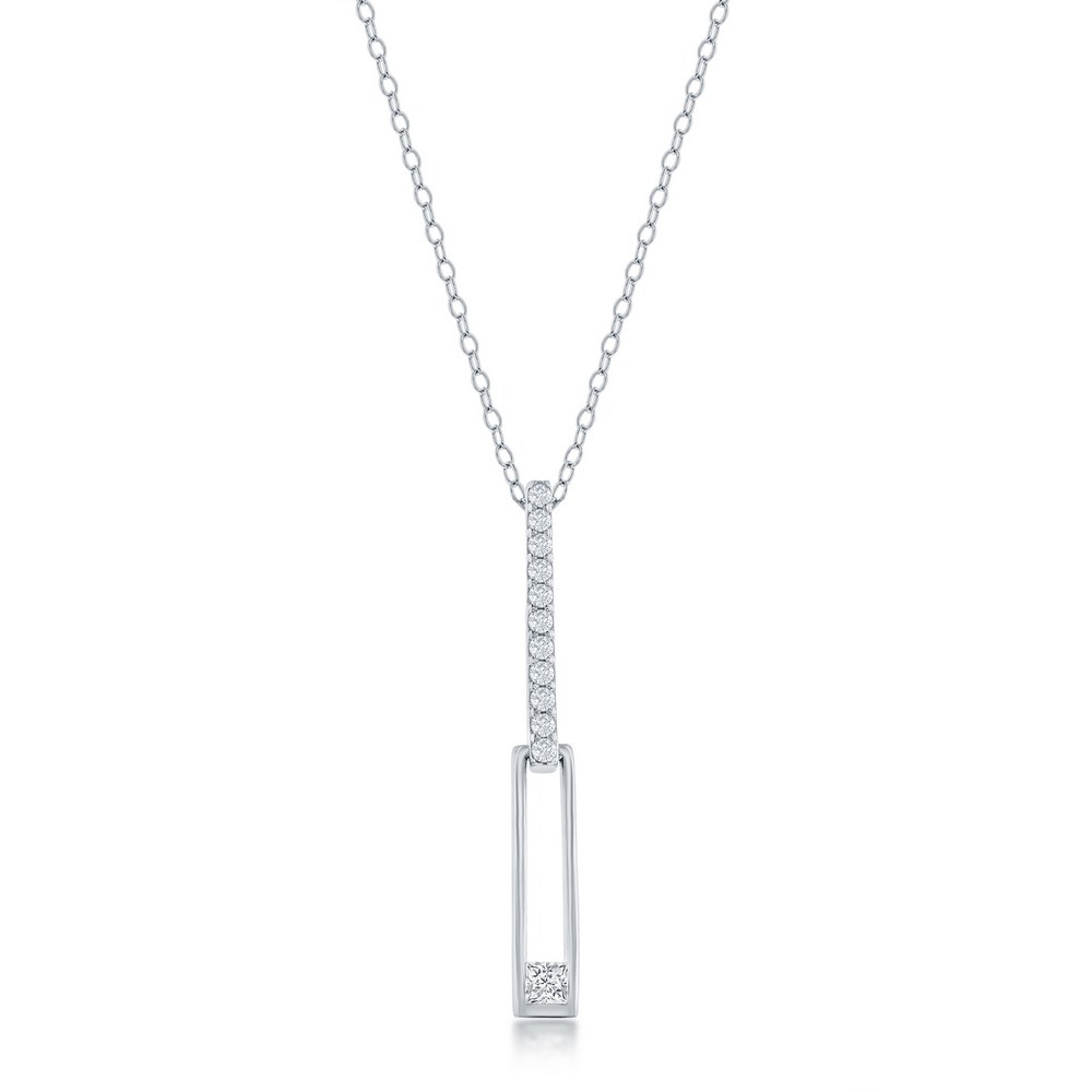 Sterling Silver Asymmetric Paperclip CZ Necklace