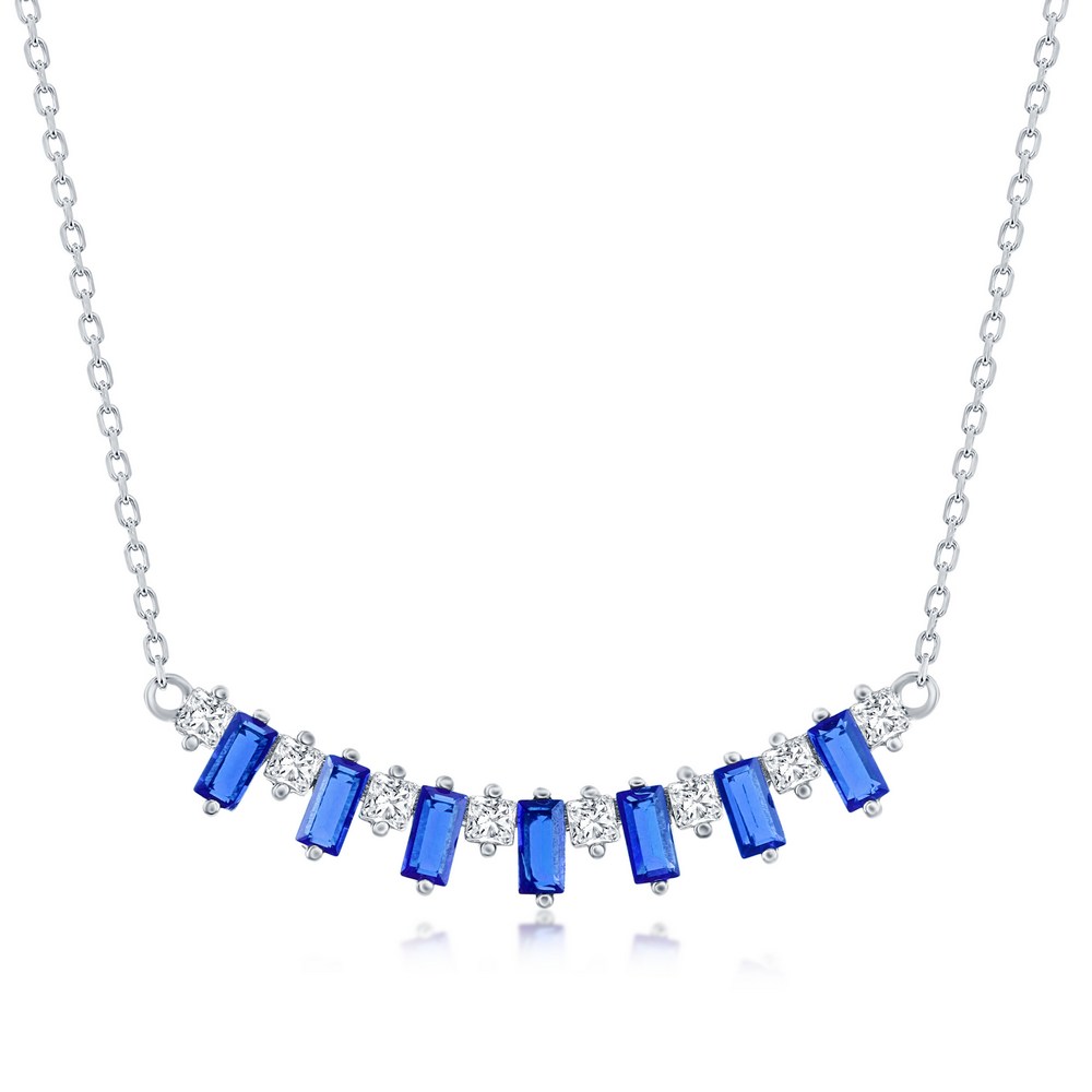 Sterling Silver Baguette CZ Bar Necklace – Sapphire
