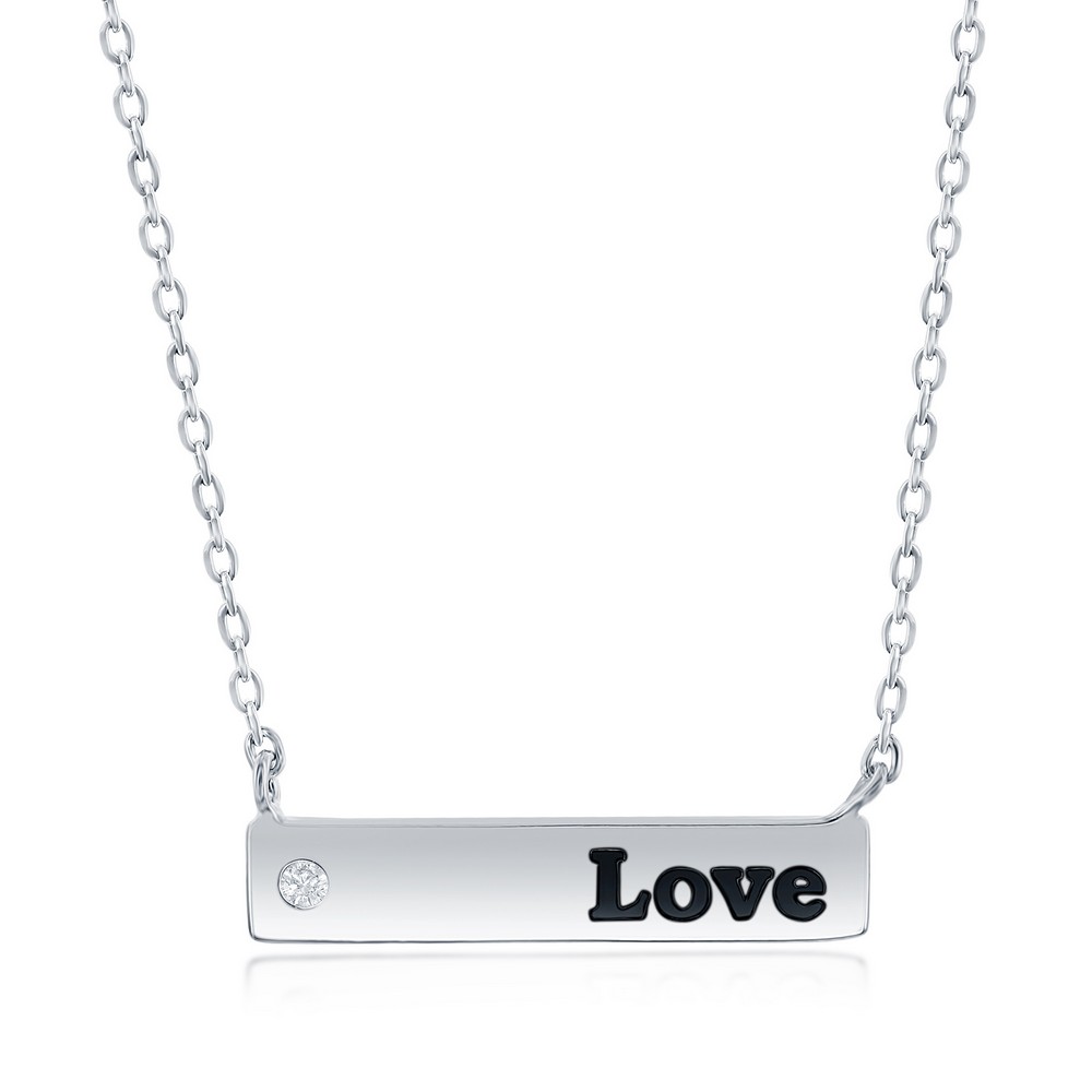 Sterling Silver Bar & CZ ‘Love’ Necklace