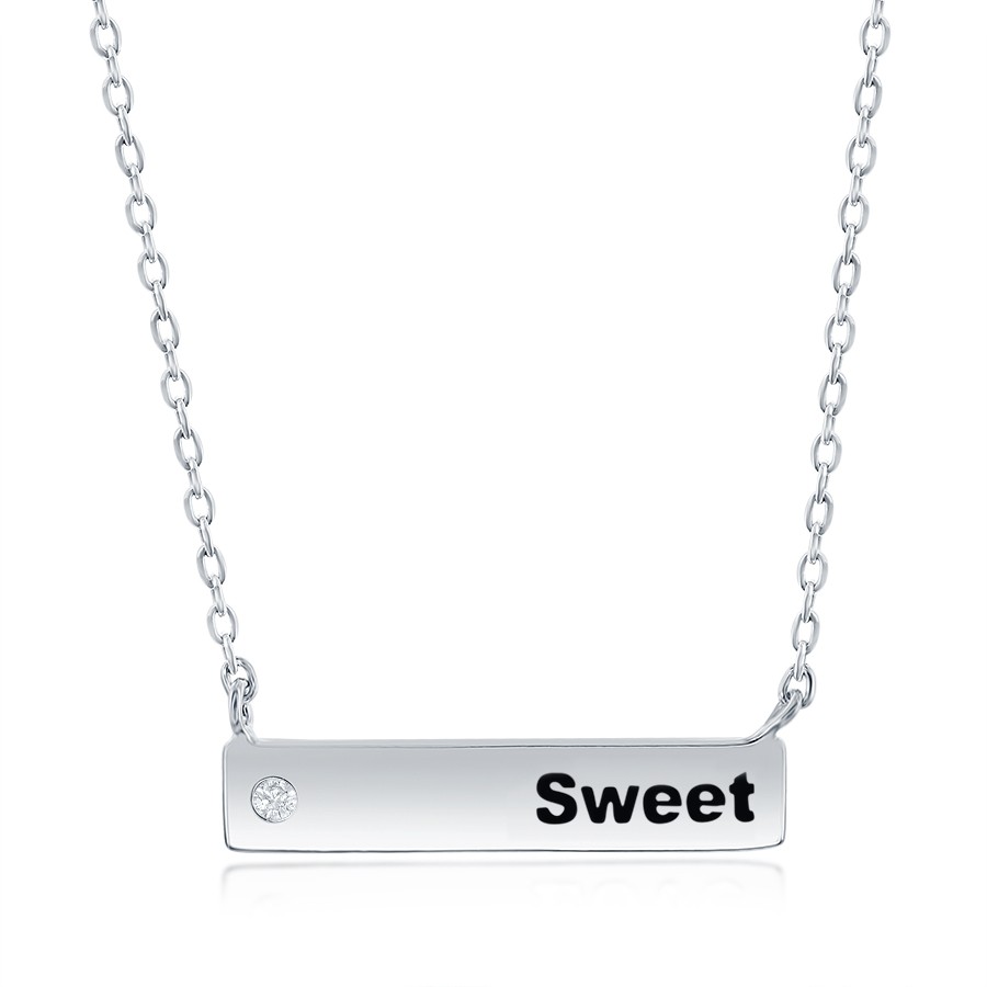 Sterling Silver Bar & CZ ‘Sweet’ Necklace