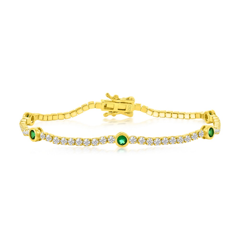 Sterling Silver, Bezel-Set CZ Gold Plated Bracelet – Emerald