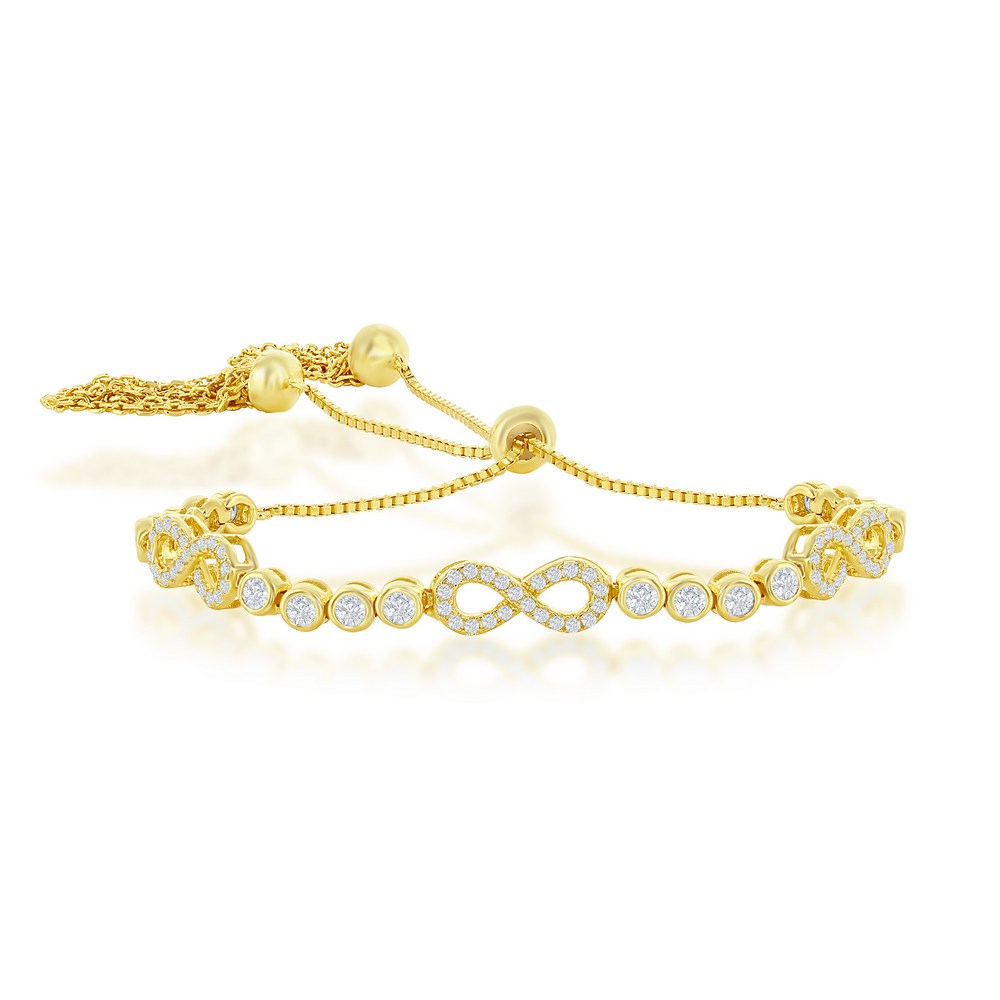 Sterling Silver, Bezel-Set CZ & Infinity Adjustable Bolo Bracelet – Gold Plated