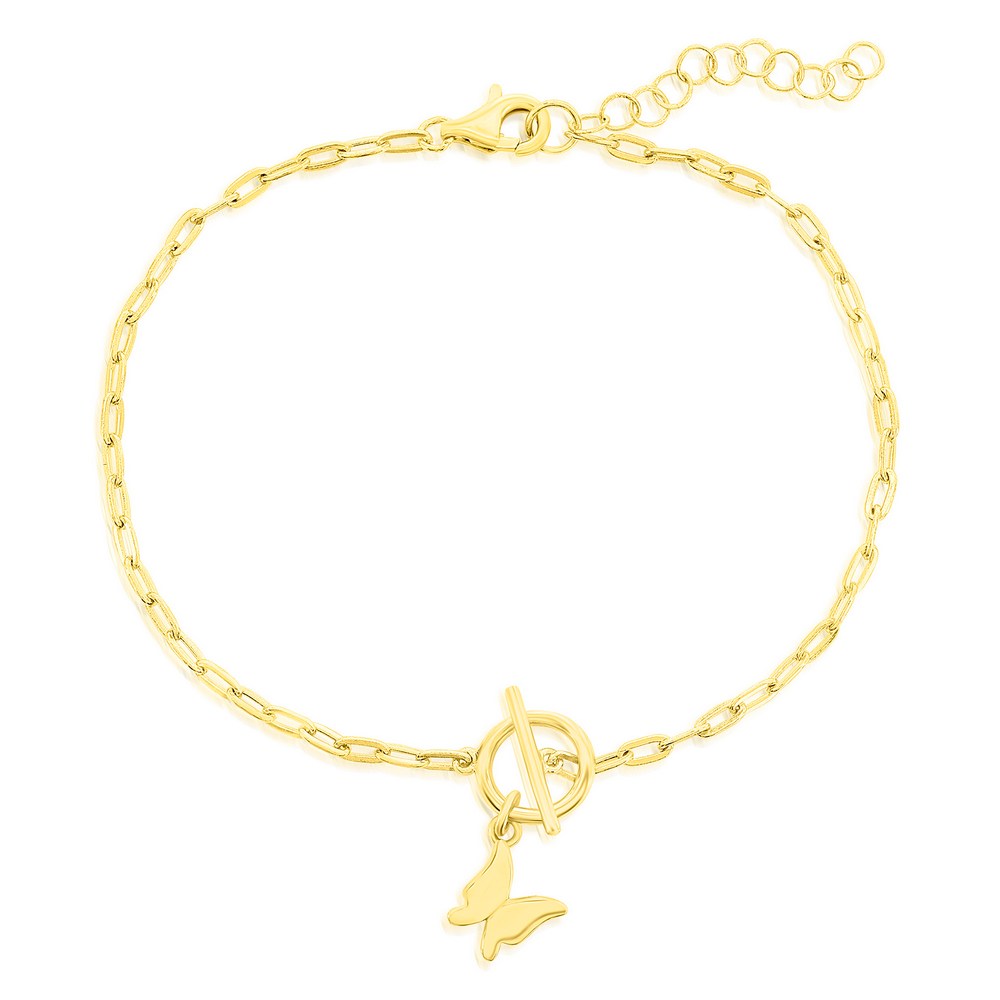 Sterling Silver Butterfly Charm Paperclip Toggle Bracelet – Gold Plated