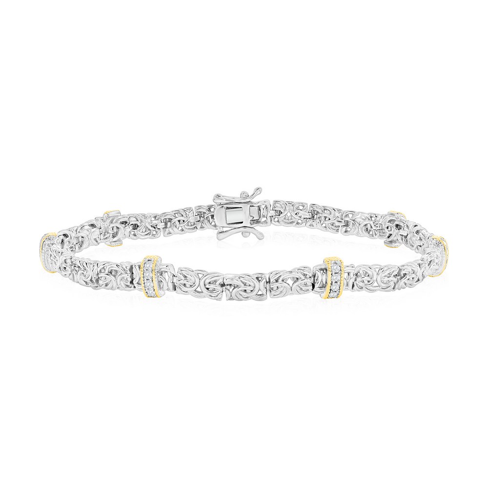 Sterling Silver Byzantine Design CZ Bracelet – Two-Tone