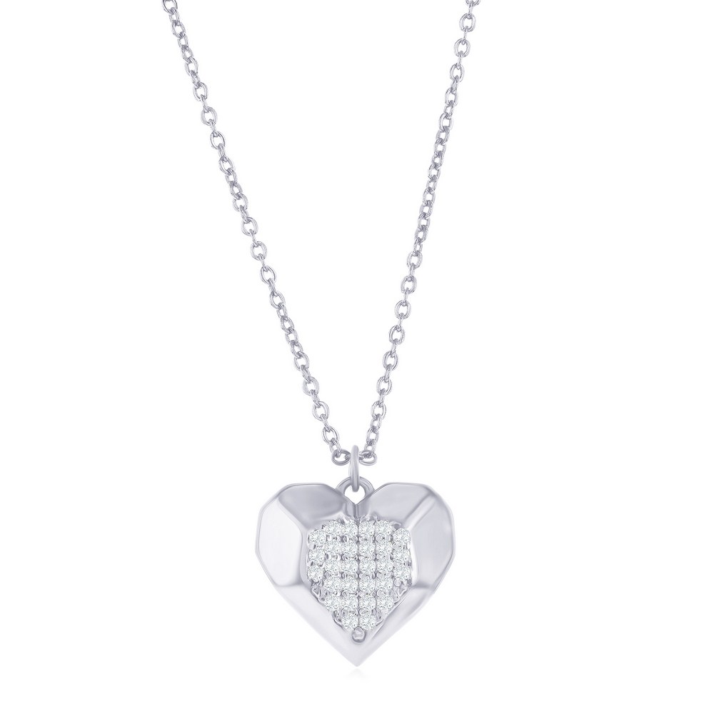 Sterling Silver Center Pave CZ Heart Necklace