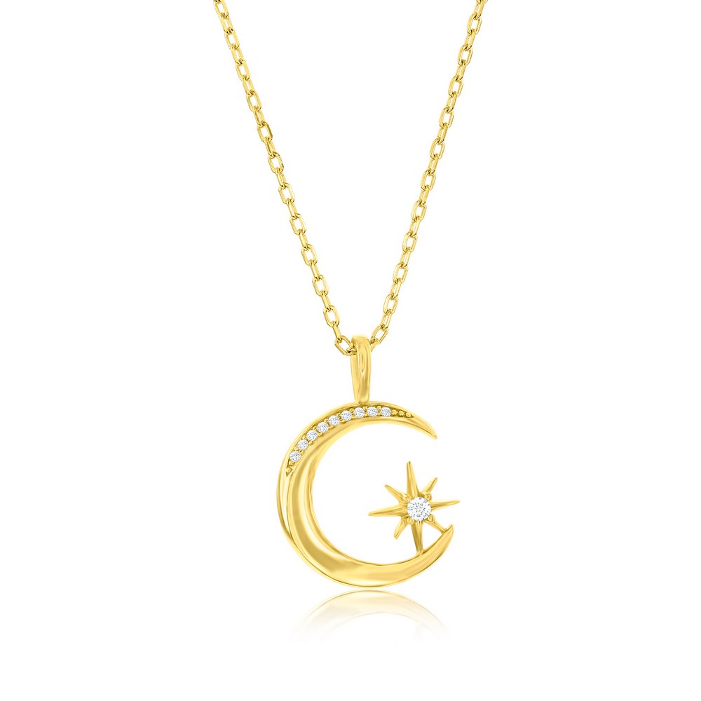 Sterling Silver Crescent Moon & North Star CZ Necklace – Gold Plated