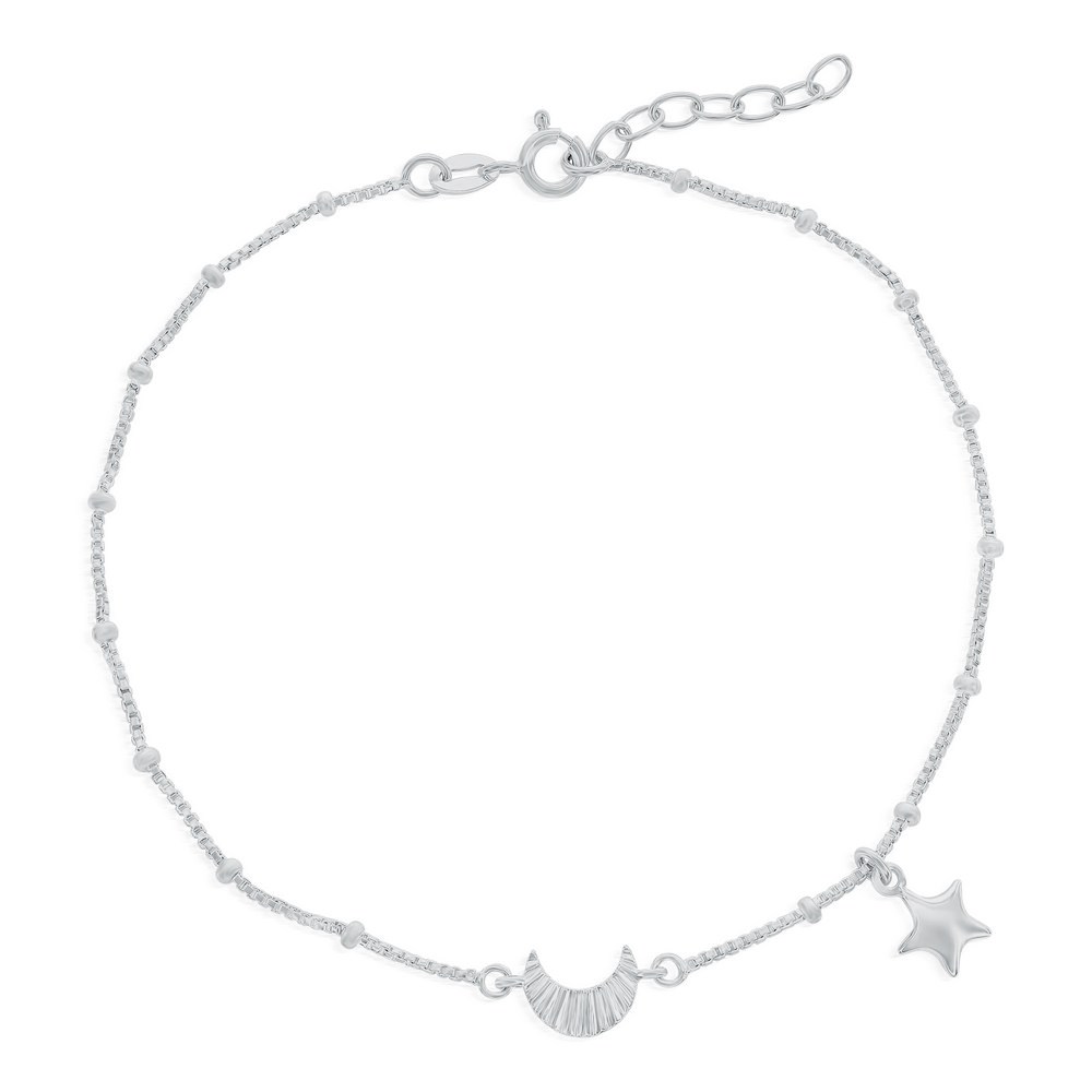 Sterling Silver Crescent Moon & Star Beaded Anklet