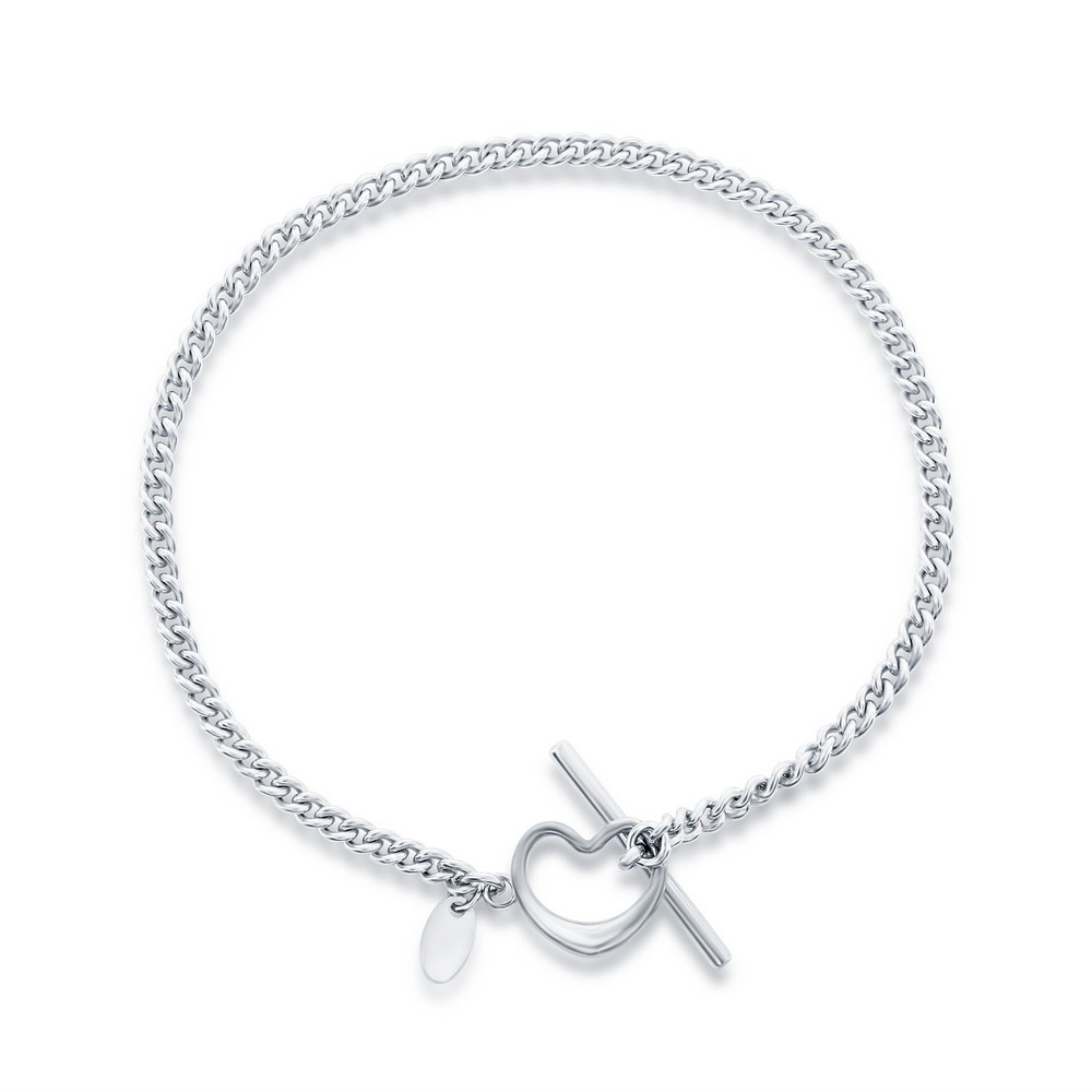 Sterling Silver Curb Chain Heart Toggle Bracelet