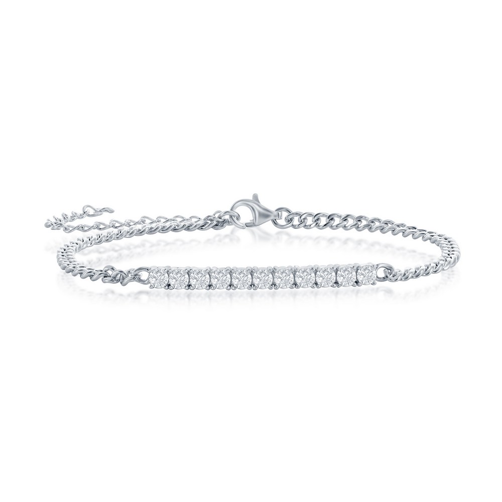 Sterling Silver CZ Bar Curb Chain Bracelet