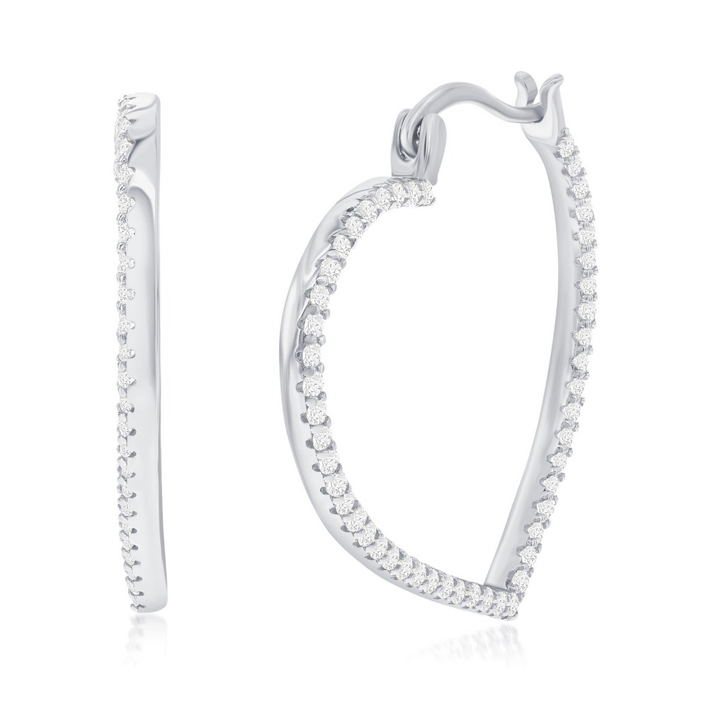 Sterling Silver, CZ Heart 25MM Hoop Earrings
