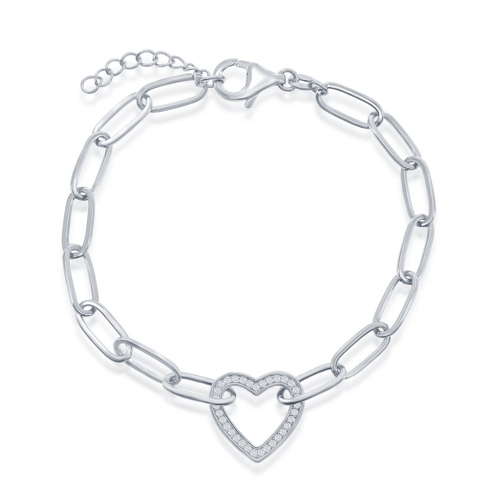 Sterling Silver, CZ Heart Paperclip Bracelet